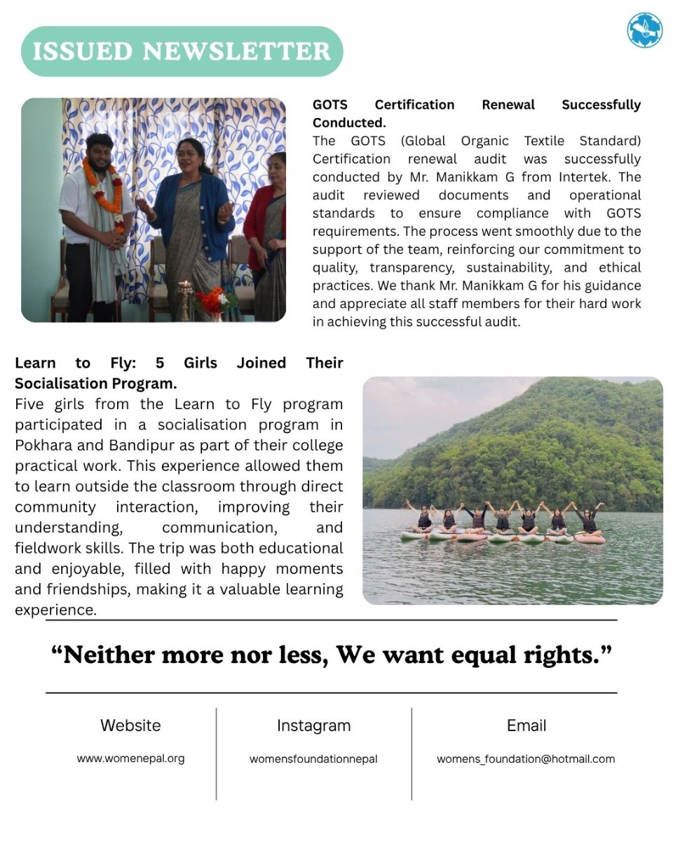 The Women’s Foundation Nepal funds the position of an accountant and provides other necessary support to ensure transparent and effective financial management within the Maheela Cooperative.